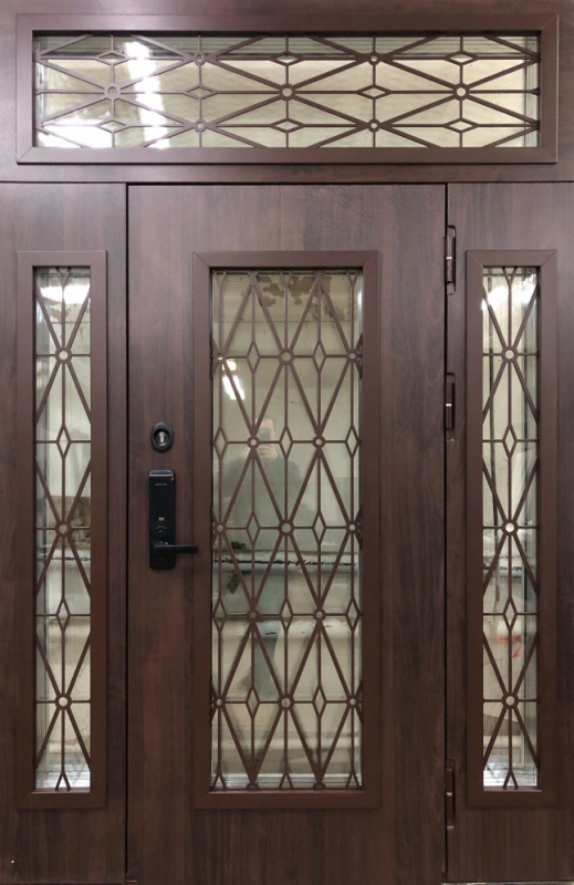 Входная дверь с декоративным рисунком и фрамугой №8 сочетает в себе элегантность и надёжность. Внешняя и внутренняя отделка из панелей МДФ с ПВХ покрытием обеспечивают долговечность и лёгкость в уходе, сохраняя стойкость к внешним воздействиям и механическим повреждениям. Каркас из профильной трубы 50x25 мм и лист металла толщиной 2 мм придают двери прочность, а ребра жесткости из труб 40x25 мм усиливают её устойчивость. Несмотря на отсутствие терморазрыва, конструкция двери с двумя контурами уплотнителей гарантирует отличную изоляцию от холода и шума. Такая дверь идеально подойдёт для установки в местах, где важен стильный внешний вид и безопасность. Входная дверь с декоративным рисунком и фрамугой №8 от производителя: быстрое изготовление и монтаж в Долгопрудном, индивидуальные размеры, широкий выбор материалов и фурнитуры, официальная гарантия до 10 лет.