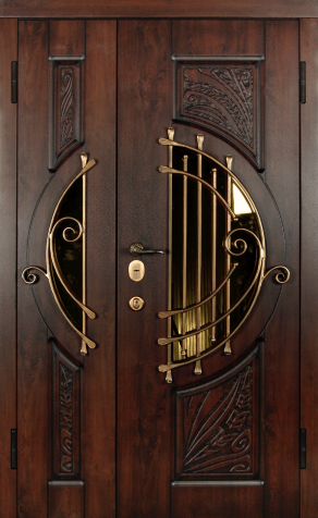 Входная дверь с ковкой и стеклом №12