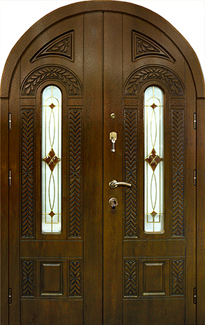 Арочный проём всегда смотрится благородно и подчёркивает архитектурный стиль дома, а витраж вносит в фасад лёгкость и игру света. Арочная входная дверь с витражом в частный дом №69 сочетает прочную металлическую основу с отделкой панелями из натурального дерева, которые сохраняют свою красоту долгие годы и стойко переносят ежедневную эксплуатацию. В конструкции предусмотрен лист стали толщиной 2 мм и система ребер жёсткости, что обеспечивает высокий уровень безопасности и долговечности. Терморазрыв в коробке и полотне защищает от промерзания и появления конденсата, сохраняя тепло в доме даже в сильные морозы. Итальянские замки Cisa цилиндрового и сувальдного типа дополняют защиту, гарантируя надёжность при ежедневном использовании. Возможность индивидуальной отделки, добавления зеркала, кованых элементов или стеклопакета делает эту модель не только функциональной, но и выразительной деталью экстерьера. Арочная входная дверь с витражом в частный дом №69 от производителя: быстрое изготовление и монтаж в Долгопрудном, индивидуальные размеры, широкий выбор материалов и фурнитуры, официальная гарантия до 10 лет.